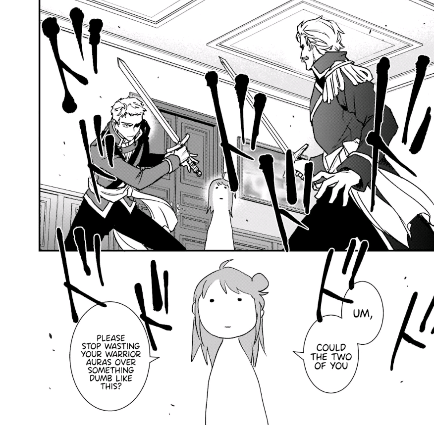 Wai… I… Huh… Um… What… What should I do?! Won’t they tear up the Royal Palace at this rate?! Ah, this is bad. I have to do something.